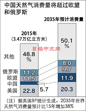中國政府制定了到2030年的天然氣中長期計劃,英國石油公司(BP)也發(fā)布了到2035年的能源動向預(yù)測。屆時,天然氣的全球消費量將超過煤炭,按不同地區(qū)來看,中國消費量增加顯著,將超過歐盟和俄羅斯,成為僅次于美國的世界第2大天然氣消費國。