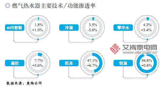 而在前沿技術(shù)中,致力于節(jié)能、環(huán)保的“冷凝”技術(shù)在2017年漸失市場(chǎng)話語(yǔ)權(quán),更貼合用戶實(shí)際需求的“零冷水”技術(shù),成為了高端燃?xì)鉄崴鞯拇硇援a(chǎn)品。官方數(shù)據(jù)顯示, 2017年以來(lái),“零冷水”產(chǎn)品的在售型號(hào)不到60款,占整體燃熱型號(hào)的1.3%,但其零售額占比卻達(dá)到5.6%,在很大程度上帶動(dòng)了燃?xì)鉄崴魇袌?chǎng)向高端化方向發(fā)展。