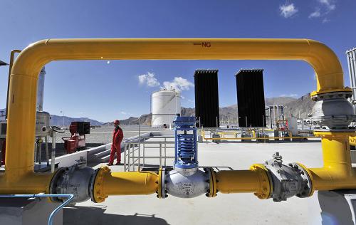 西藏拉薩液化天然氣站安全員王露說(shuō):“拉薩天然氣站擴(kuò)能改造工程項(xiàng)目現(xiàn)已建成六座庫(kù)存為900立方米的液化天然氣儲(chǔ)罐,拉薩天然氣站一期和二期每天輸氣能力可達(dá)到35萬(wàn)立方米,完全可滿足拉薩市民目前用氣需求。”