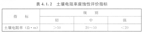 4.1.2在土壤層未遭到破壞的地區(qū),可采用土壤電阻率指標判定土壤腐蝕性。土壤電阻率腐蝕性評價指標應符合表4.1.2的規(guī)定。