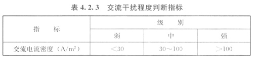 1管道受交流干擾程度判斷指標可按表4.2.3進行判定。