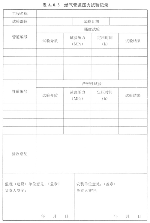 A.0.3燃?xì)夤艿缐毫υ囼?yàn)記錄可按表A.0.3的格式記錄。