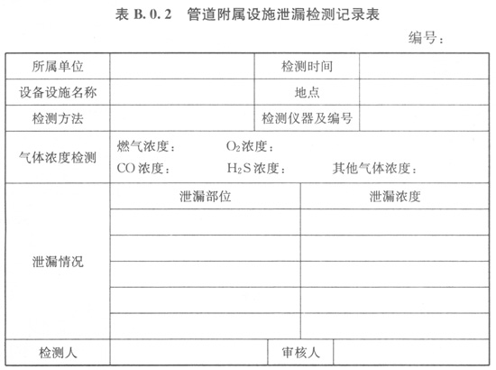 B.0.2管道附屬設(shè)施泄漏檢測(cè)記錄可選用表B.0.2的格式。