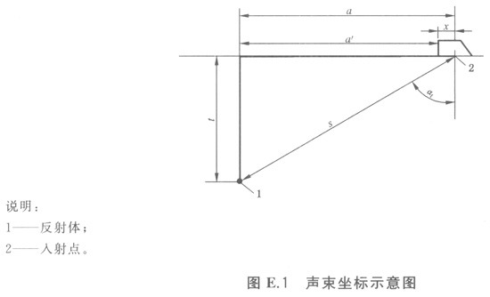使用脈沖波技術(shù),應(yīng)在示波屏上設(shè)置超聲時(shí)基線。一束透射聲束的聲程距離、深度、水平距離、或者扣除前沿的水平距離的坐標(biāo),見圖E.1。除非另有注明,下述所提及設(shè)定時(shí)基線工藝是指聲束傳播的聲程距離(一個(gè)回波等于兩次的傳播路徑)。