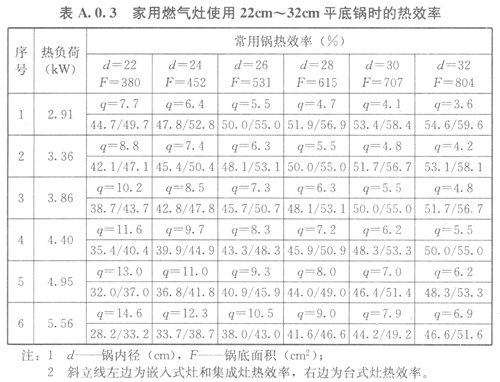 A.0.3家用燃氣灶使用22cm~32cm平底鍋時的熱效率可采用表A.0.3的數(shù)值。