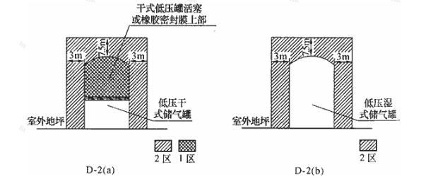 圖D-2 露天設置的低壓儲氣罐的爆炸危險區(qū)域等級和范圍劃分