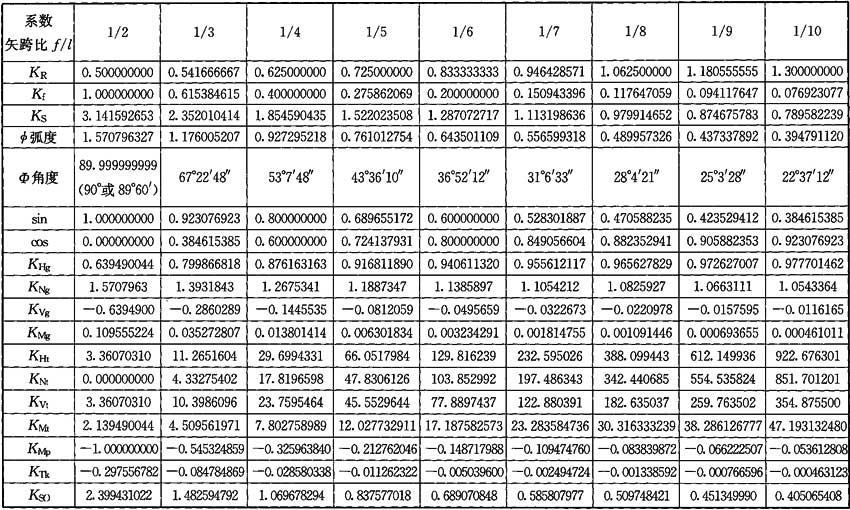 KR、Kf、KS——拱形管道計算系數(shù),應(yīng)按表C.0.1的規(guī)定取值。