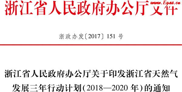 浙江省天然氣發(fā)展三年行動計劃(2018—2020年)