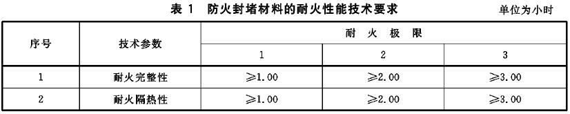 5.2.2 防火封堵材料的耐火性能應符合表1的規(guī)定。
