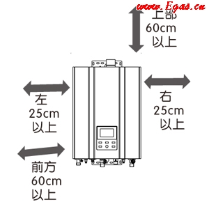 ② 熱水器切勿安裝在浴室內(nèi)(平衡機(jī)除外),在車輛、船只上,切勿將熱水器暗裝。