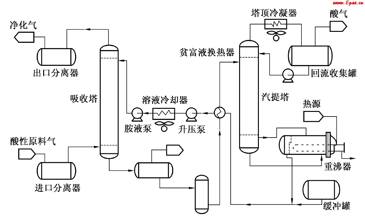 圖2-1 醇胺脫出酸性氣體流程