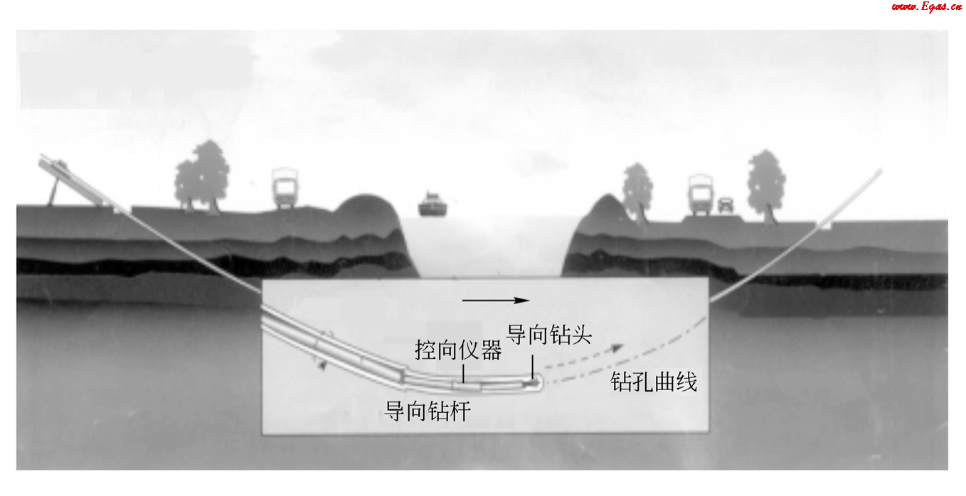 鉆機架通過鉆桿推動裝在鉆桿前的鉆頭破土鉆進,泥漿從鉆桿和鉆孔的間隙返回泥漿罐,如圖4-1-9所示。具體操作要點如下: