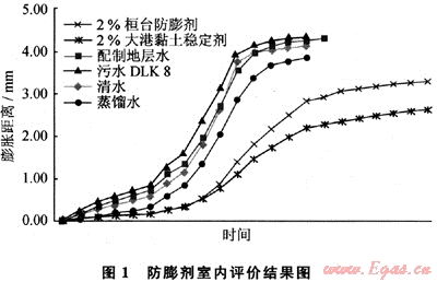 收集到6個廠家18種黏土穩(wěn)定劑,依據(jù)SY5971-94標準《注水用黏土穩(wěn)定劑性能評價方法》中的離心防膨法,先用膨潤土對這些聚合物類黏土穩(wěn)定劑進行了初步篩選,然后用雅克拉凝析氣田的天然巖心粉進行復核評價,最后用頁巖膨脹儀測定了黏土穩(wěn)定劑對雅克拉凝析氣田天然巖心粉的防膨率,結果見圖1。
