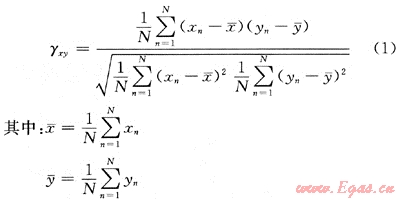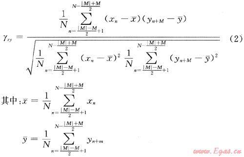 M是Yn相對于Xn的深度差(采樣點數(shù)差),式(2)在M<<N時適用。以M為變量,在適當?shù)乃阉鞔伴L內變化,則當M正好為yn相對于xn的實際深度差時,計算得到的γxy應為最大。以此反推,在搜索窗長范圍內,當計算的相關系數(shù)最大時,M即為yn相對于xn的實際深度差(采樣點數(shù)差)。