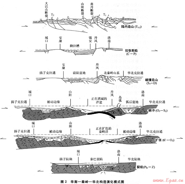 由于古中國洋的擴張,華北陸塊南緣、塔里木陸塊東南-南緣、柴達木陸塊兩側(cè)和華南陸塊北緣從邊緣裂谷發(fā)展為大西洋型離散邊緣,而陸內(nèi)裂谷分別形成賀蘭拗拉槽和龍門山拗拉槽。