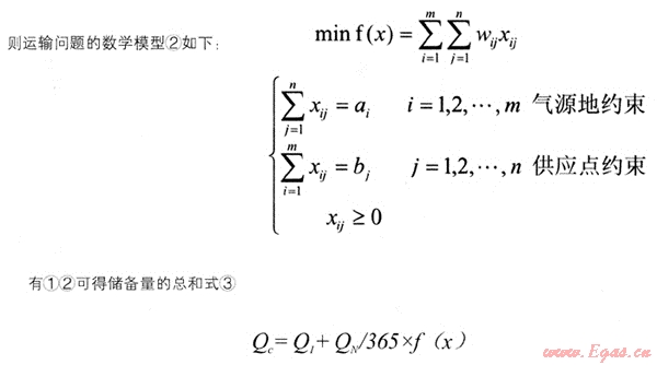 其次,確定上游氣源到目的地的最小運(yùn)輸耗時(shí)。由于長(zhǎng)輸管道因某種外部因素(地震,泥石流等)破壞導(dǎo)致無法輸配燃?xì)?,必須依靠其他途徑運(yùn)輸至城市內(nèi)部(水運(yùn),陸運(yùn)等)。可以通過建立線性規(guī)劃方程算出在滿足供氣量等于用氣量的情況下,從各氣源地運(yùn)輸至城市供應(yīng)點(diǎn)的最少必要時(shí)間。