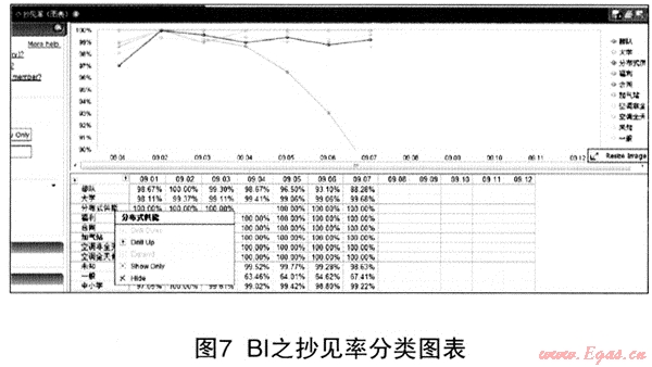 GDIA系統(tǒng)對數(shù)據(jù)挖據(jù)及BI展現(xiàn)作了有意義的嘗試。BI展現(xiàn)技術(shù)可按使用者的不同管理思路和需要,進(jìn)行多維度的自由分解展現(xiàn),系統(tǒng)實現(xiàn)了抄見率、賬款回收等指標(biāo)的深層挖掘和分解下鉆,為管理者提供了全新的分析角度,起到了抄表銷售管理和賬務(wù)管理的輔助決策工具的作用。該功能的實現(xiàn)也對使用者提出了很高要求,使用者不僅要熟練掌握各類業(yè)務(wù)流程及熟悉系統(tǒng)數(shù)據(jù)結(jié)構(gòu),同時需要具備相當(dāng)廣度與深度的管理分析能力。