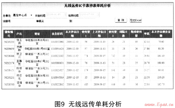 利用客戶編號將《客戶信息管理系統(tǒng)》中安檢摘錄數(shù)(機(jī)械、液晶余量)、定期采集到的無線遠(yuǎn)傳數(shù)據(jù)與《IC卡燃?xì)獗沓渲倒芾硐到y(tǒng)》內(nèi)充值數(shù)據(jù)進(jìn)行比較,了解用戶表具閥門狀況、表具當(dāng)前單價、表具總金額(使用金額、剩余金額)、系統(tǒng)購買量等數(shù)據(jù),有效掌握表具的運(yùn)行情況,及時發(fā)現(xiàn)表機(jī)械透支使用、表具使用總量超過購買量等異常情況,通過條件篩選列出異常用戶的列表,代替?zhèn)鹘y(tǒng)管理者人工逐戶比較費(fèi)時費(fèi)力的問題。同時能對無線遠(yuǎn)傳表上的使用量及剩余量情況進(jìn)行有效分析,為準(zhǔn)確統(tǒng)計IC卡表區(qū)域產(chǎn)銷差與用氣單耗情況提供數(shù)據(jù)依據(jù)(見圖9)。
