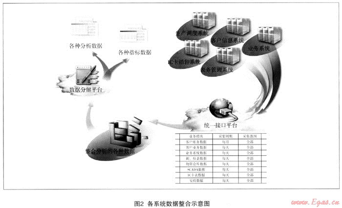 為了解決數(shù)據(jù)分散獨(dú)立的現(xiàn)狀,公司于2009年初正式啟動“GDIA系統(tǒng)項目”,旨在探究有效的技術(shù)方法和手段,在各系統(tǒng)間建立起數(shù)據(jù)紐帶與交互機(jī)制,將各個數(shù)據(jù)庫中公司關(guān)心卻沒能有效組織的數(shù)據(jù)信息整合展現(xiàn)到統(tǒng)一直觀的GDIA系統(tǒng)平臺中來,GDIA系統(tǒng)作為信息數(shù)據(jù)整合的試基石,在燃?xì)馐斜惫菊麄€信息化進(jìn)程中起著承前啟后的深遠(yuǎn)作用。