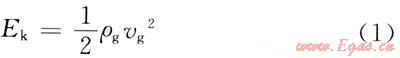 式中:Ek為氣體動能,J/m3;ρg為氣體密度,kg/m。;vg為氣體速度,m/s。