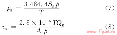 氣體密度(ρg)、速度(vg)計(jì)算如下