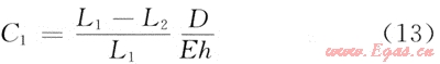 上式是在假設(shè)整個(gè)套管是均勻的,而且在整個(gè)長度上都能變形的條件下得到的。在總長為L1的套管上,有長度為L2的套管段被水泥漿固結(jié),此時(shí)總的變形系數(shù)為: