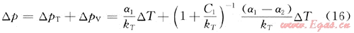 式中:△p為溫度升高產(chǎn)生的環(huán)空液體膨脹壓,MPa。