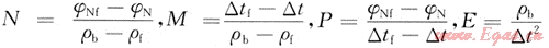 為了突出巖性,消除孔隙的影響,定義4個(gè)測(cè)井參數(shù)——M、N、P、E。其中: