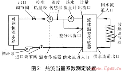 熱量表是用熱量計(jì)量裝置,它關(guān)心的是供回水溫差。直接測(cè)定熱用戶供回水溫差并將其實(shí)時(shí)轉(zhuǎn)換為流量信號(hào),可省去傳統(tǒng)熱量表計(jì)算供回水溫差、流量?jī)蓚€(gè)環(huán)節(jié),簡(jiǎn)化熱量表結(jié)構(gòu)。流差式熱量表就是基于這一思想設(shè)計(jì)的,采用流體溫差傳感器附加一塊熱水流量計(jì),實(shí)現(xiàn)對(duì)用熱量的計(jì)量。目前,我國(guó)供熱科研人員針對(duì)我國(guó)供熱系統(tǒng)現(xiàn)狀,提出了多種供熱計(jì)量方法[1~9]。本文對(duì)流差式熱量表計(jì)量原理及熱流當(dāng)量系數(shù)的測(cè)定進(jìn)行探討。
