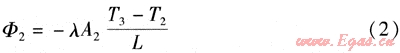 假設(shè)不考慮導熱桿的徑向?qū)?,根?jù)傳熱學定律,導熱桿的一維導熱量Φ2的計算式為: