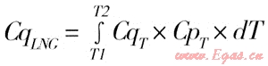 LNG的溫焓狀態(tài)隨壓力變化較大,其低溫傭值也差別較大,不同溫度下LNG釋放出不同的冷能,其冷能價值應為: