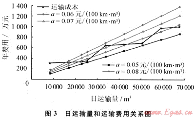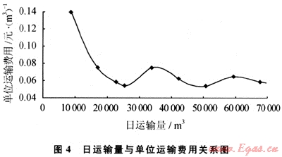 2) 運輸距離越遠,日運輸量越大,單位運輸成本越低。