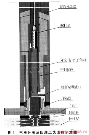 井下氣液分離及同井回注系統(tǒng)是一種結構簡單、體積小、投資低、效率高的排水采氣設備,能夠實現(xiàn)井下氣液分離、產出水同井回注的功能,可大幅度降低排水采氣的成本,是出水氣井開采中值得推廣的技術[4~6]。