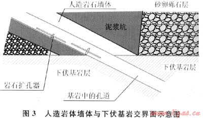 對制作“人造巖體”材料的配制比例進行適當調(diào)整,可以消除“人造巖體”與下伏基巖之間存在的強度變異系數(shù),從而減小或消除因強度不同形成的DL值,而且“人造巖體”四周基坑可作為泥漿存儲坑,從而減小了施工作業(yè)場地的占地面積。