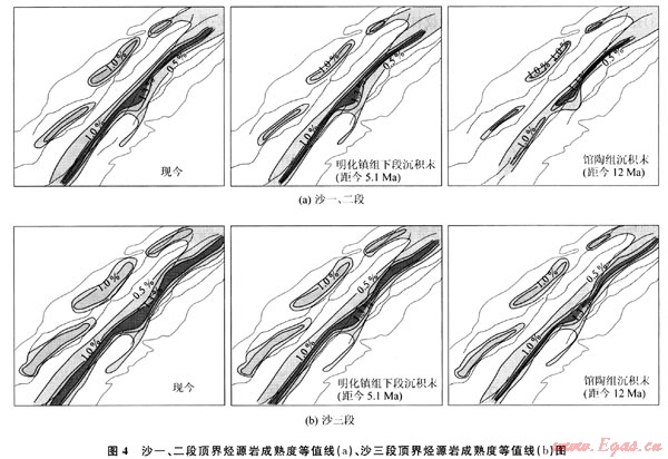 摘要:為研究渤海東北部海域遼東灣地區(qū)烴源巖的演化史,運用盆地模擬技術(shù),在恢復(fù)該區(qū)熱演化史和埋藏史的基礎(chǔ)上,利用EASY%Ro計算模型對10條測線進行烴源巖成熟度演化分析,勾畫出烴源巖演化平面圖,得出遼中凹陷和遼西凹陷烴源巖的演化特征。研究結(jié)果表明:①遼中凹陷中北洼熱演化程度明顯高于南洼;②遼西凹陷北洼、南洼、中洼熱演化程度基本相同;③遼中凹陷比遼西凹陷熱演化程度高;④現(xiàn)今,遼中凹陷深部古近系沙河街組三段和沙一、二段烴源巖處于高成熟階段,凹陷邊緣處于重要生油區(qū),遼西凹陷主力烴源巖處于生油氣高峰。