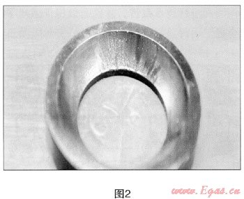 (1) 在壓縮氣體行業(yè),采用液壓加氣子站車裝卸運(yùn)輸高壓天然氣時,閥門在開啟時壓力非常高,并通常含有一定量的雜質(zhì),氣體或液壓油在流動的過程中,在高壓的作用下,當(dāng)高壓循環(huán)油或天然氣通過閥門時,由于柱塞泵瞬間壓力過大,氣體溫度會快速升高,使聚甲醛閥體的。型密封圈變軟,這使氣體的雜質(zhì)在高壓的沖擊下,很容易在通過閥體時放射性劃傷密封面(見圖2),造成氣體泄漏。