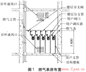 高層住宅樓宇的設(shè)計中,住宅標(biāo)準(zhǔn)層均設(shè)有諸如水表房、電表房、燃?xì)獗矸?、消防設(shè)備房、垃圾房等樓宇設(shè)備房間,同一樓層住戶的燃?xì)獗砭图邪惭b在該樓層的燃?xì)獗矸績?nèi)。
