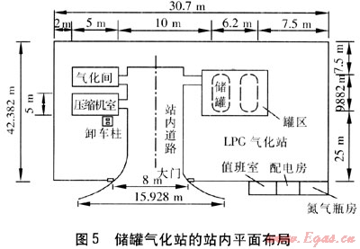 工業(yè)企業(yè)LPG氣化站站址的選擇,不僅要考慮工藝系統(tǒng)設(shè)備的布局對建筑面積的要求,而且要考慮相關(guān)規(guī)范對氣化站安全防火距離的要求。