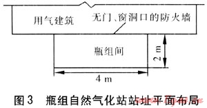 總?cè)莘e小于1m3的瓶組自然氣化站的站址平面布局見圖3。