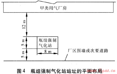 總?cè)莘e小于4m3的瓶組強制氣化站站址的平面布局見圖4。