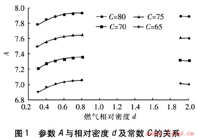 式中A——與燃?xì)庀鄬?duì)密度以及C有關(guān)的參數(shù)