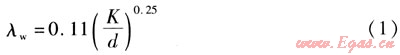 式中λw——以水為供熱介質(zhì)時摩擦阻力系數(shù)