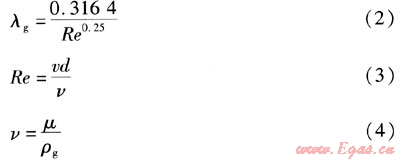 式中λg——以乙二醇水溶液為供熱介質(zhì)時摩擦阻力系數(shù)
