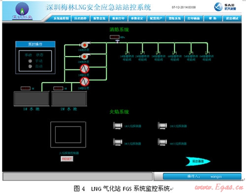當發(fā)生火情、危險氣體的泄漏及LNG的泄漏,以便及時采取相應措施如隔離生產(chǎn)設備,啟動消防泵、閥,開啟泡沫或消防噴淋裝置。
