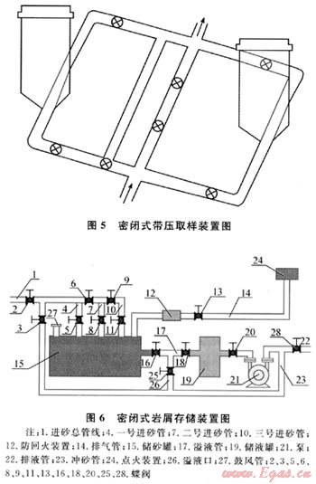 四相分離器分離出的固相顆粒沉淀在罐體內(nèi)部,很難進行即時地質(zhì)取樣。因此,在四相分離器之前需配置密閉式帶壓取樣裝置。為實現(xiàn)巖屑的連續(xù)取樣,取樣裝置包括兩個取樣筒,這兩個筒可以進行交替取樣。