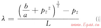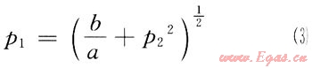 式(2)中a、b為常數(shù),令v=0,則p1與p2關系為:
