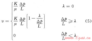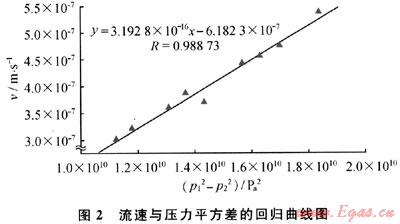 可以看出,v與p12-p22為通過原點的線性關系。當存在啟動壓力梯度時應該為: