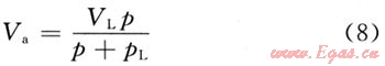 式中:Va為飽和吸附氣量,m3/t;p為儲(chǔ)層壓力,MPa。