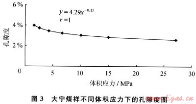 QNDN1井3#煤層埋深184m,由式(6)、(7)計(jì)算體積應(yīng)力(三向主應(yīng)力的平均值)為2.82MPa,由式(5)得φH=3.67%。
