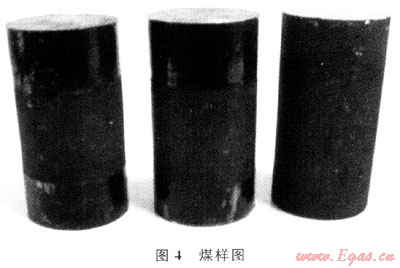 實(shí)驗(yàn)煤樣取自陽泉固莊煤礦,其煤層位于山西沁水煤田。在井下人工采集未受擾動(dòng)的典型地質(zhì)單元的煤體,運(yùn)到地面后進(jìn)行蠟封、裝箱,在煤炭科學(xué)研究總院加工成Φ50×100mm的試件(圖4)。
